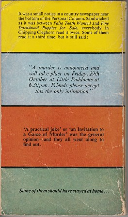 An announcement in the Chipping Cleghorn Gazette proclaims that a murder will take place at the home of Miss Blacklock. Curious villagers gather there at the appointed time expecting some kind of parlour game but a murder duly takes place.