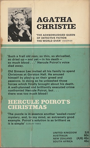 One of PAN’s striking photographic covers depicting key elements of the plot – the diamonds, sheet music for the Dead March, blood, the bedroom door key, a cinema ticket and what must be a passport. I love the font used and also the image of Agatha Christie (wearing what I saw at the time as her all-the-better-to-eat-you-with-my-dear smile).