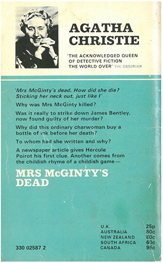 Mrs McGinty was charwoman to four homes in Broadhinny: the Upwards, the Carpenters, the Rendells and the Wetherbys, all ‘very nice people’. Poirot visits each of them and finds that the cleaner had a reputation for snooping amongst their things, calling to mind the children’s rhyme: